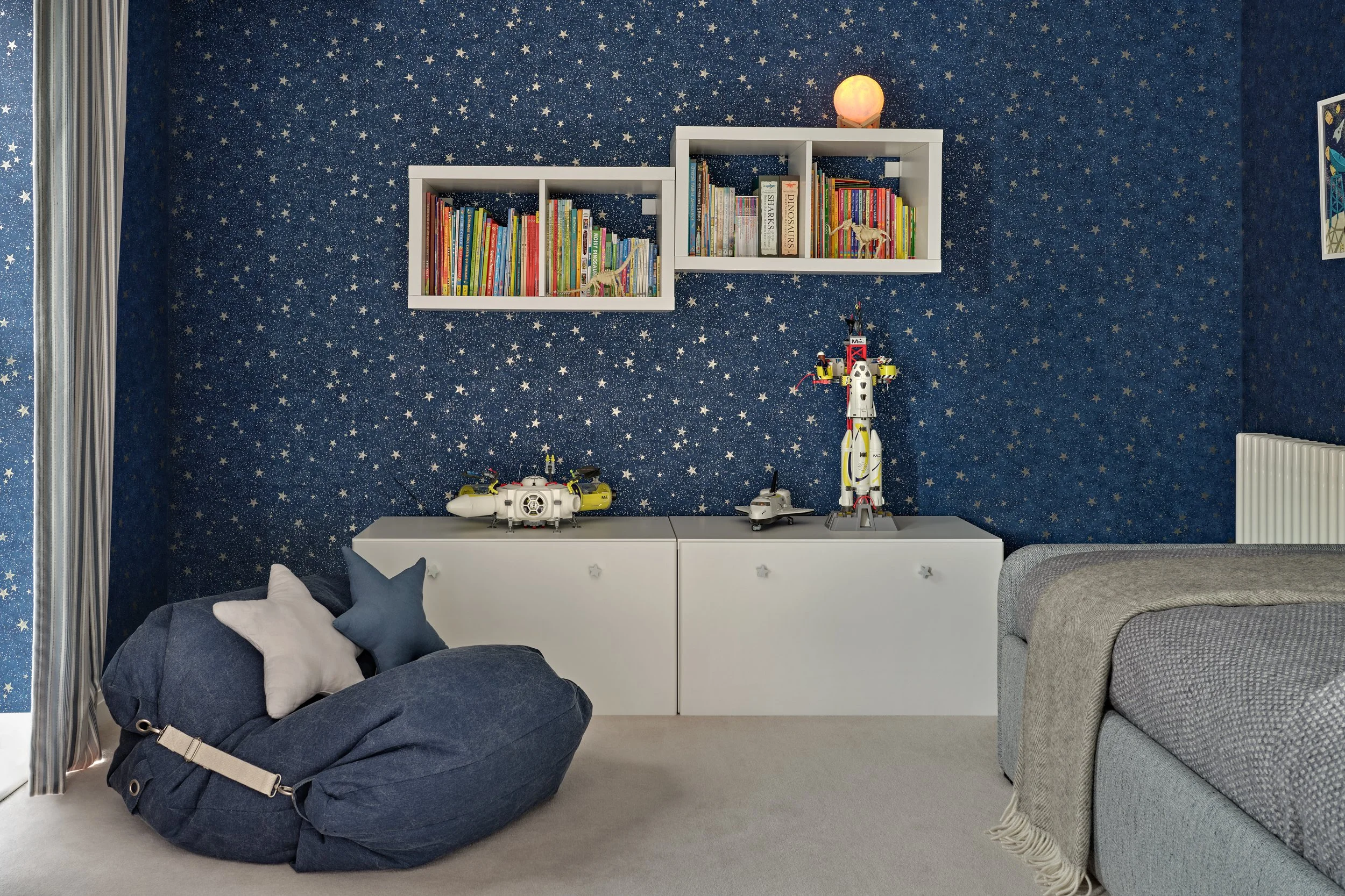 Our designs balance fun and functionality: we prioritise smart storage solutions for toys, books, and clothes to keep things tidy and practical, while ensuring that every element is safe, durable, and easy to maintain. We also consider the room’s ability to grow with the child, incorporating flexible layouts and timeless pieces that can evolve as their tastes change. From custom joinery to playful details, we create environments that are both magical and grounded in thoughtful design.